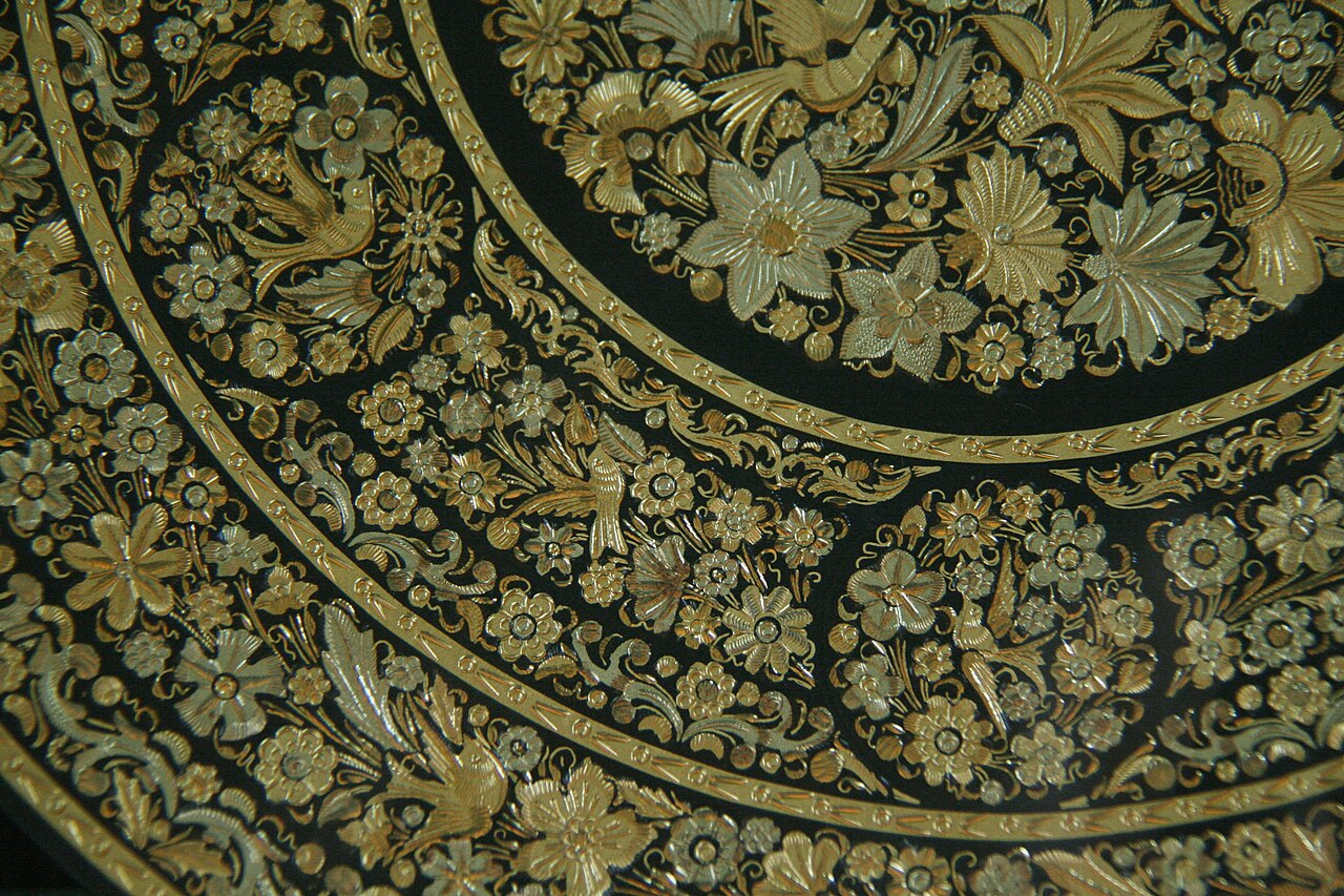 Imagen de un palto decorado con láminas de oro mediante la técnica del damasquinado. Wikimedia Commons