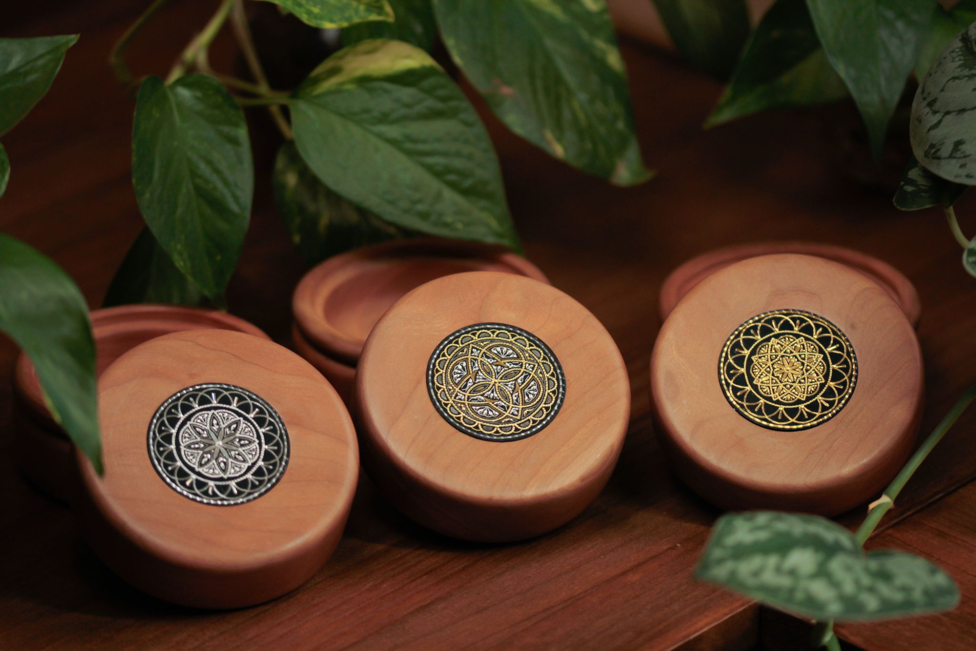 Cajas de madera con motivos geométricos elaborados por Togashi Damasquinos. Cortesía: Raquel de la Torre Serrano.