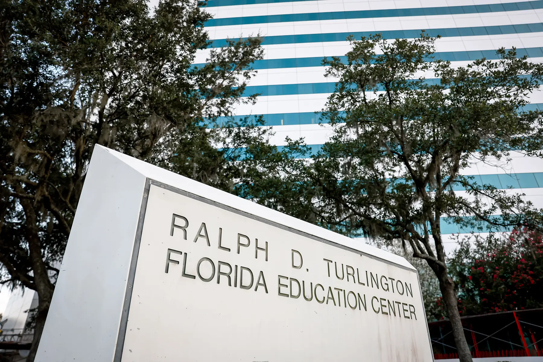 El edificio del Departamento de Educación de Florida en Tallahassee, Florida, el 25 de julio de 2023. El 13 de noviembre, la Junta Estatal de Educación de Florida votó por unanimidad añadir lecciones sobre la historia del comunismo a los estándares de estudios sociales para los grados 6.º a 12.º a partir del año escolar 2026-27, tras la aprobación de una ley de 2024. Joe Raedle/Getty Images
