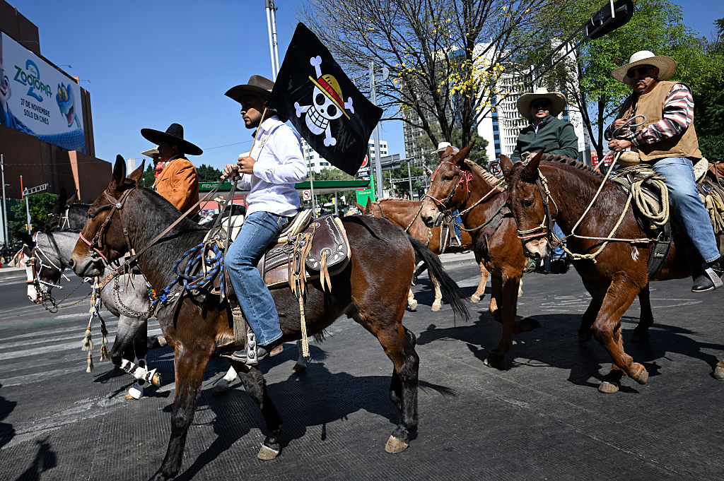 Un manifestante a caballo porta una bandera durante una marcha contra el gobierno de la presidenta de México, Claudia Sheinbaum, en la Ciudad de México el 15 de noviembre de 2025. Miles de personas marcharon por las calles de la Ciudad de México el sábado para protestar contra la violencia del narcotráfico y las políticas de seguridad del gobierno de la presidenta Claudia Sheinbaum. Foto de Alfredo Estrella/AFP vía Getty Images