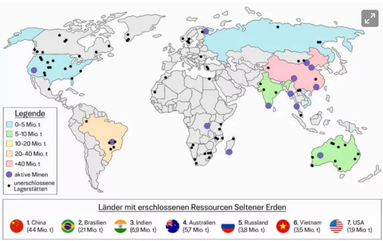 Yacimientos de tierras raras y minería a nivel mundial. Foto: ts/The Epoch Times, con material de iStock
