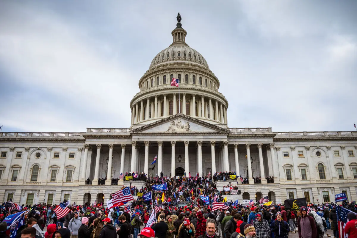 Un grupo numeroso de manifestantes en las escalinatas del Capitolio, en Washington D. C., el 6 de enero de 2021. Foto: Jon Cherry/Getty Images